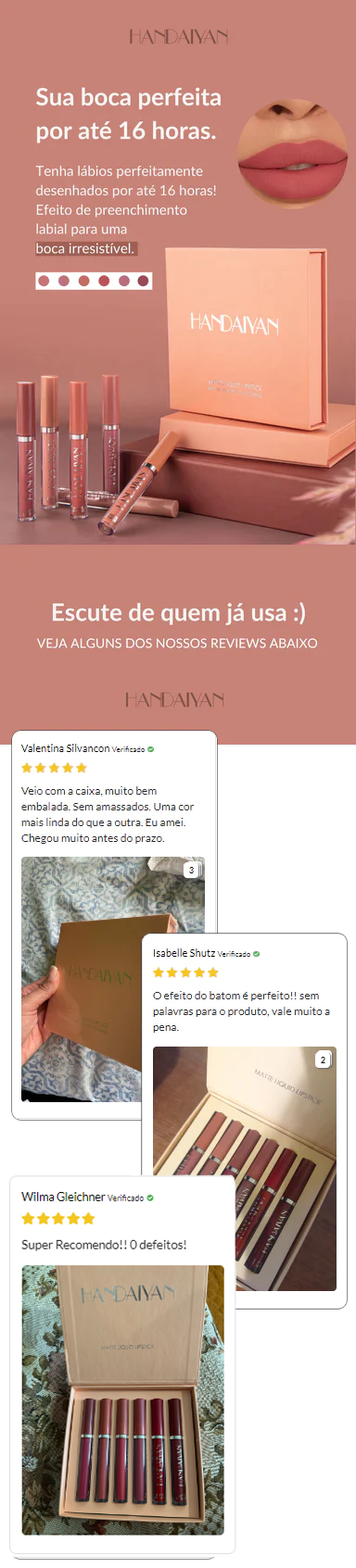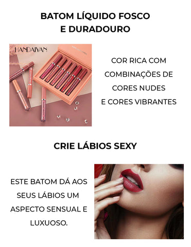 O lançamento Beauty Lip de uma das melhores marcas HANDAIYAN, é a solução para acabar com o problema de retocar o batom várias vezes ao dia, possui duração de até 16 horas e deixa seus lábios ainda mais sexys!