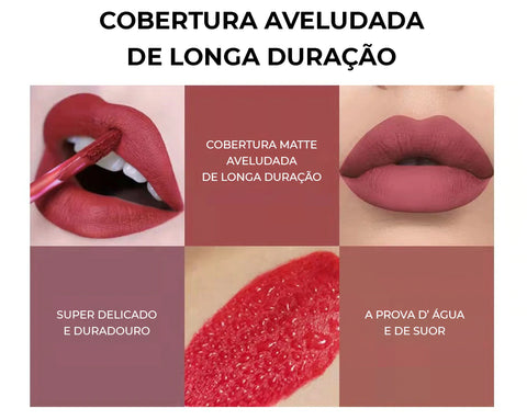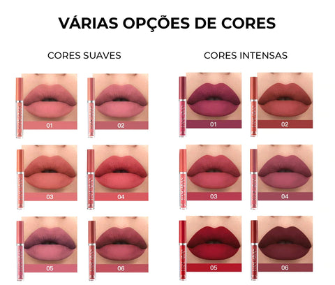 Escolha entre 2 kits de 6 lindas cores de pigmentação forte, marcantes e de qualidade premium pensadas especialmente para suavizar ou intensificar seus lábios ao longo do seu dia sem ressecar ou craquelar, você escolhe!